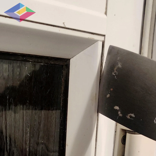 With the beads removed, use suction cups to carefully lift out the old double glazed glass unit. Clean the frame thoroughly by removing any old packers, dirt, or sealant. Then check the seals and drainage holes for wear before installing the new unit.